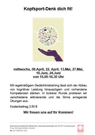 Mo. 20.04 2026 wieder um 15:00 Uhr